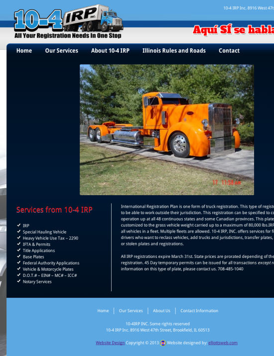 10-4 IRP Website: http://10-4irp.com/ Date Launched: March 2013 Business Type: Request a Quote Name* Email* PhoneCurrent Website Message
