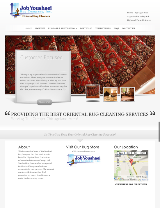 Job Yousheai Rug Cleaners Website: http://orientalrugcleanerschicago.com/ Date Launched: April 2013 Business Type: Request a Quote Name* Email* PhoneCurrent Website Message